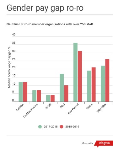 Six companies, however, saw a widening of the pay gap: ferry operators Stena and Wightlink, offshore survey company Gardline, dredging firm LaFarge Tarmac Marine, Rever Offshore (Bibby), and tanker operator Teekay.